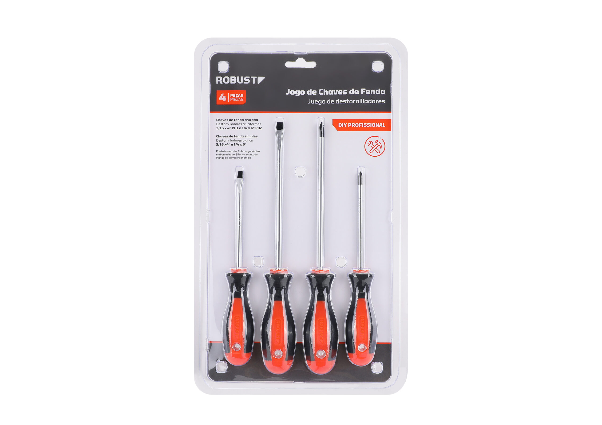 Perfeitos para pequenos consertos, ajustes e montagens, os Jogos de Chaves de Fenda ROBUST são ideais para ter sempre por perto. Com pegada confortável e nas medidas mais utilizadas, ajudam a encarar tarefas do dia a dia sem complicação.